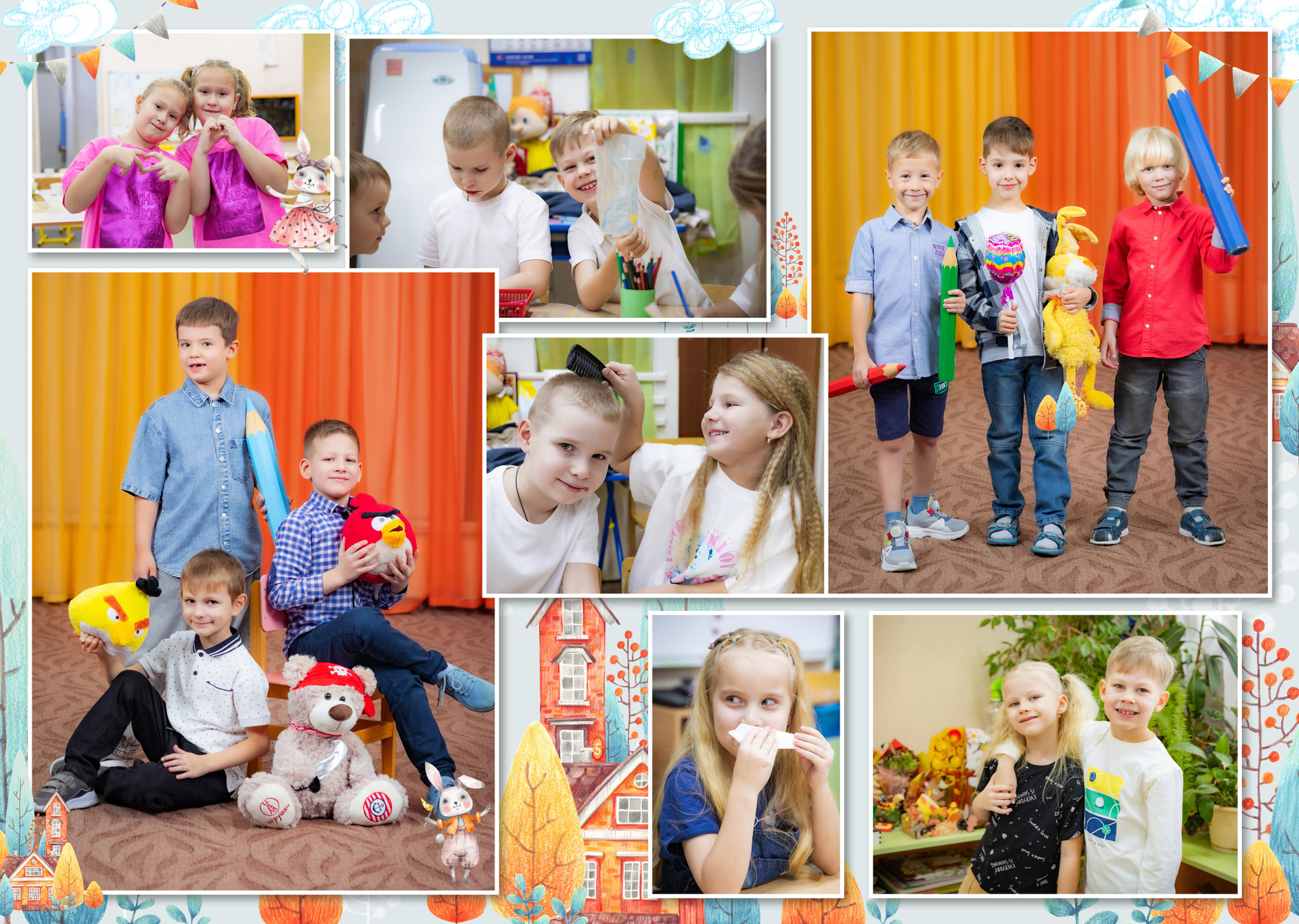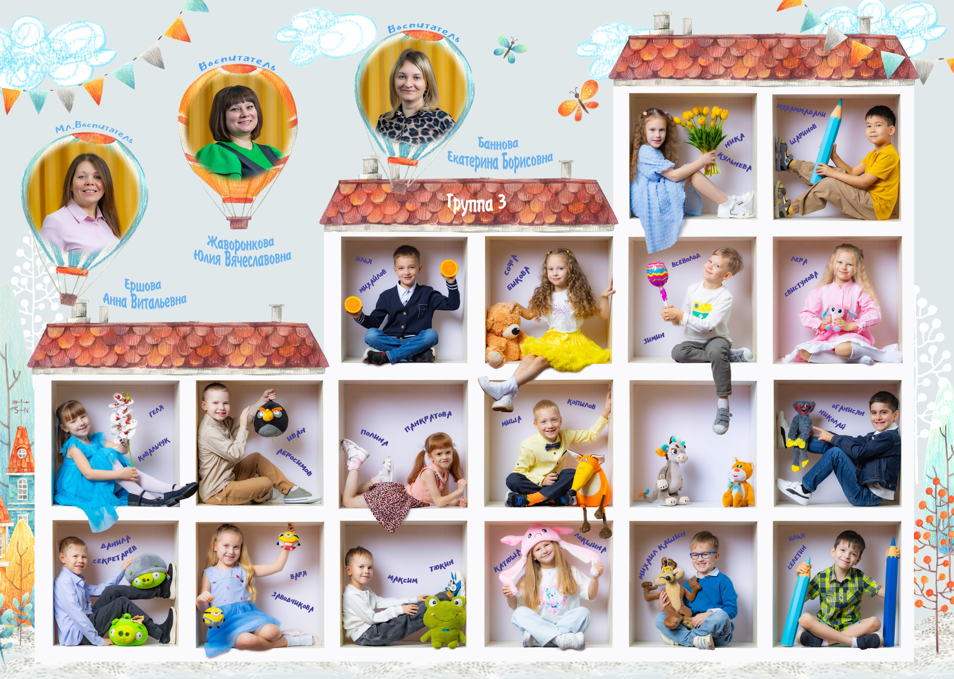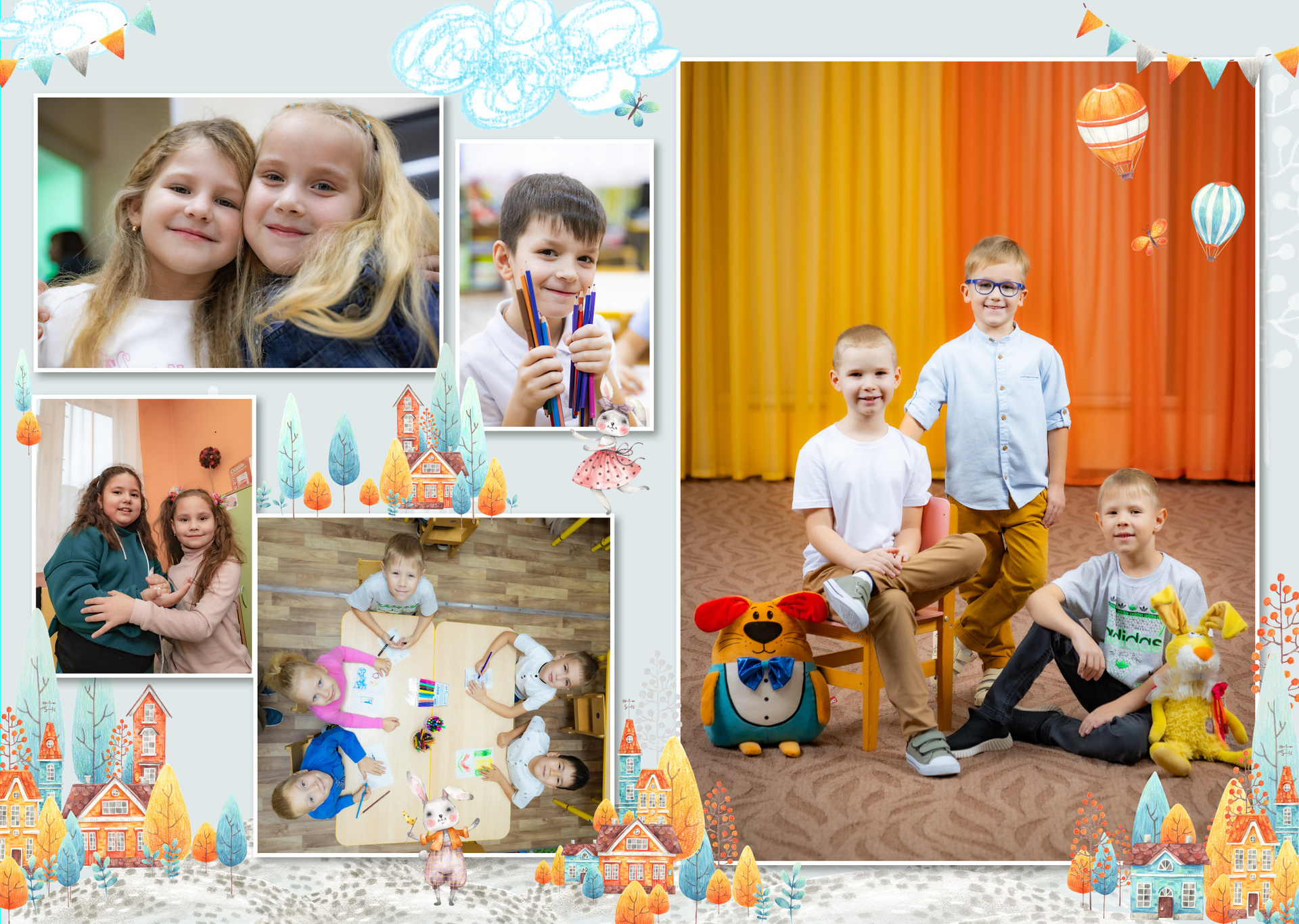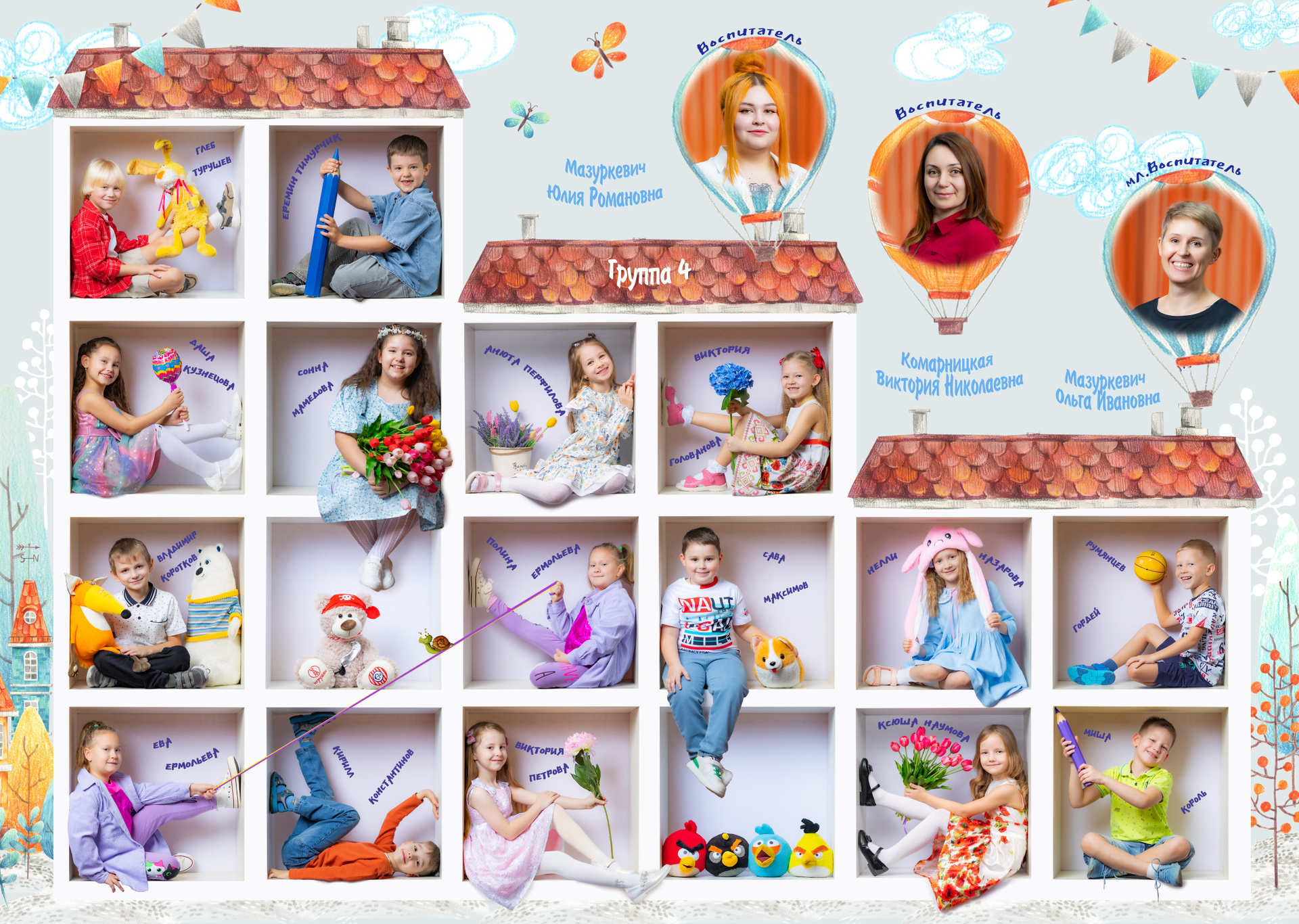 — Портретная съемка в кубе (Проработка поз — у каждого ребенка на виньетке разные позы)
