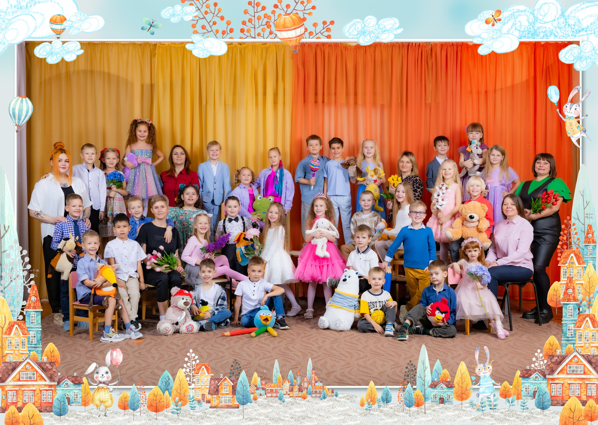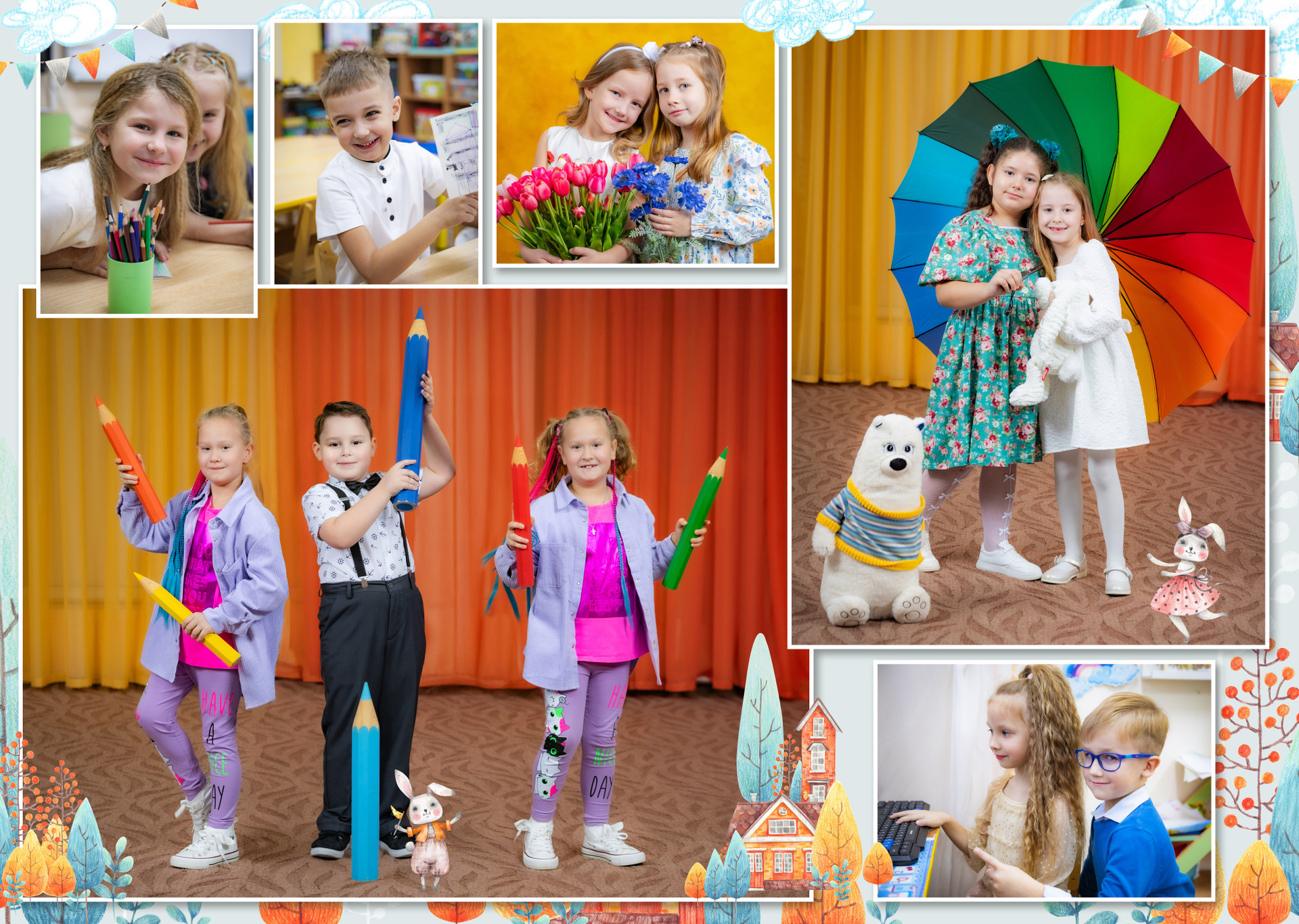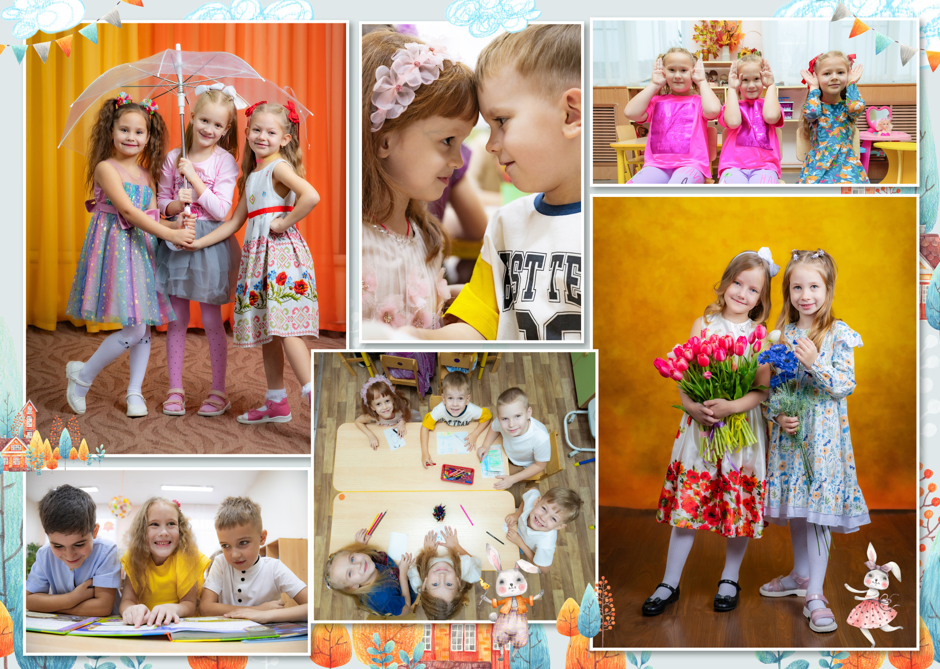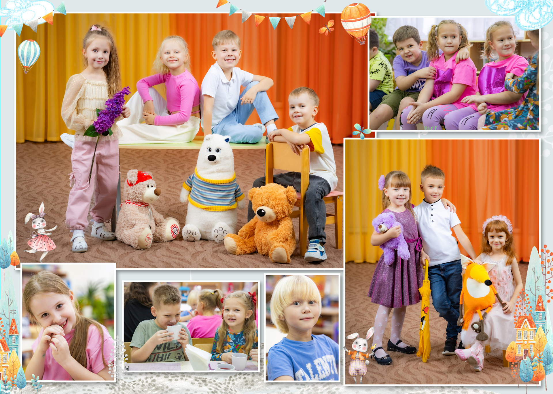 — Портретная съемка в кубе (Проработка поз — у каждого ребенка на виньетке разные позы)