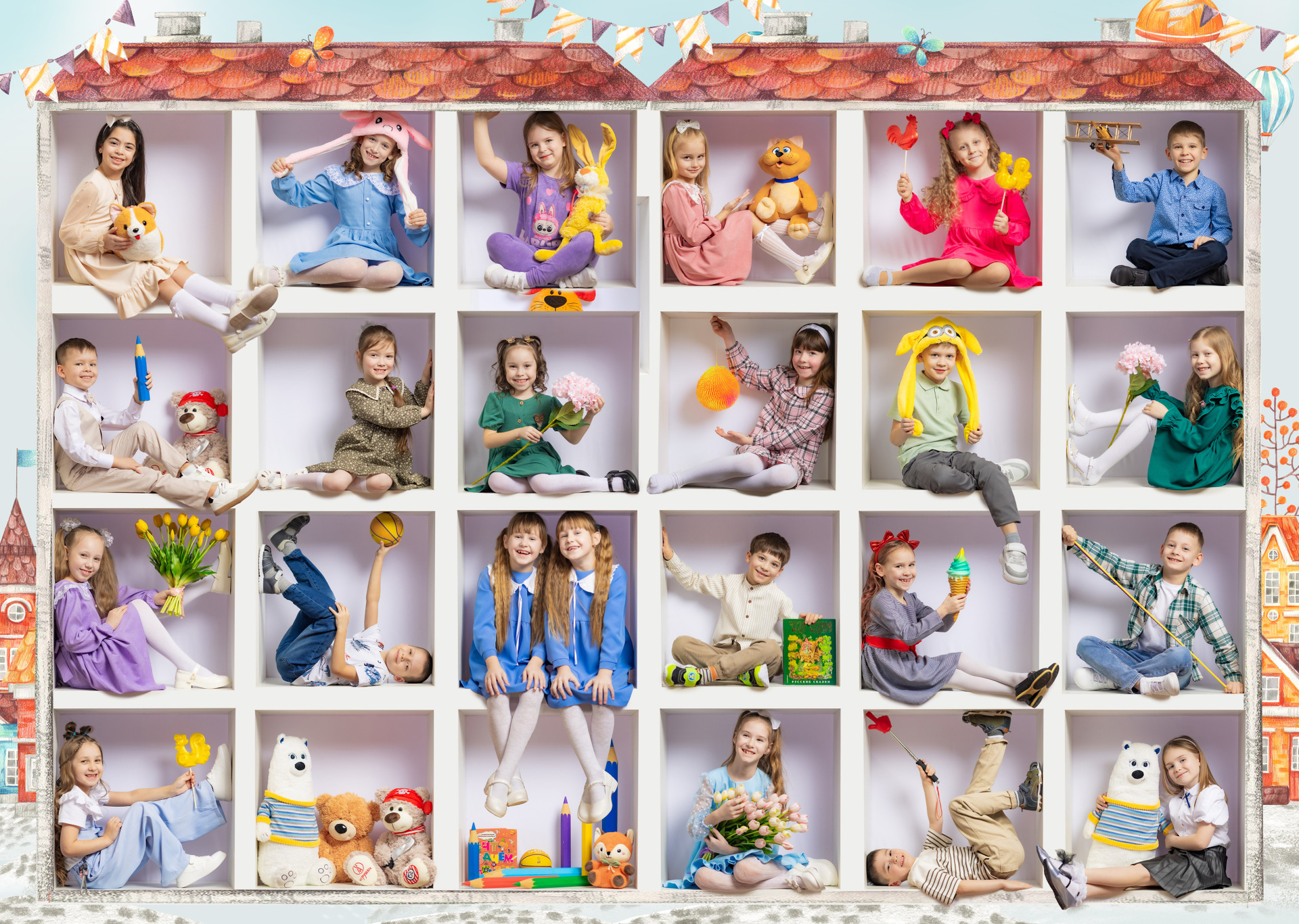 Съемка общего кадра в классическом стиле занимает от 20-40 минут в зависимости от количества детей в группе. Постановочный общий кадр занимает от 40 до 1,5 часов в зависимости от количества детей в группе.